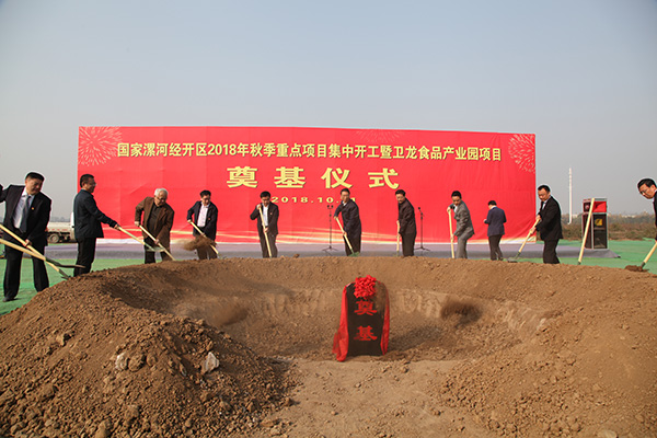 10月31日,经济技术开发区2018年秋季重点项目集中开工暨卫龙食品产业园项目奠基仪式举行。市委副书记、市长刘尚进,副市长余伟出席并为项目开工培土奠基。