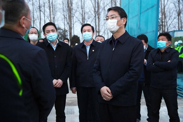 3月10日下午,市长刘尚进带领市直有关部门实地察看城建交通重点项目复工开工情况,以项目工地现场办公形式召开市政府第93次城建交通工程周例会。副市长徐汇川参加。