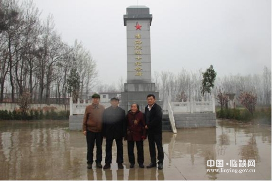 图为全国一级“战斗英雄”海水干(右一),十四军河南战友联谊会会长郭双喜(左一),在王孟镇坟台村“李海欣烈士纪念碑”广场,与英雄李海欣烈士的父亲李银秀、母亲张俊峰在一起合影。