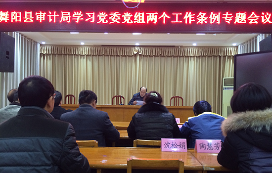 近日,舞阳县审计局开展学习《中国共产党地方党委会工作条例》和《中国共产党党组工作条例》专题会议,深入传达和全面落实中央要求,帮助广大党员领导干部准确理解和掌握“两个条例”重要内容,以进一步规范全局党组织工作程序,不断提升基层党建水平。