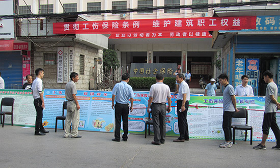县人社局在局门口集中宣传,在舞阳供电、冠军瓷业、县医院、富平春酒厂、宏康电力等11个企业单位设立宣传点,进行工伤保险集中宣传。一是悬挂工伤保险宣传标语,展览工伤保险专题宣传栏。在主要街道、局门口等位置悬挂了数十条工伤保险宣传标语,制作了一批工伤保险宣传专栏,充分利用局门口位置进行展览。二是散发宣传单、宣传册,举办现场政策咨询活动。组织人员在局门口举行集中宣传活动,制作了工伤保险认定流程规范等内容的宣传单和宣传册,向用人单位和各界群众发放宣传工伤保险知识,重点宣传了工伤保险的参保范围、参保程序、参保待遇。三是深入企业基层,组织宣传培训。深入企业向用人单位及职工宣传工伤保险政策法规、发放宣传资料,面对用人单位及职工的咨询进行现场解答,确保宣传效果。提高了广大劳动者依法维护自身合法权益的意识,增强了用人单位遵守法律的自觉性。